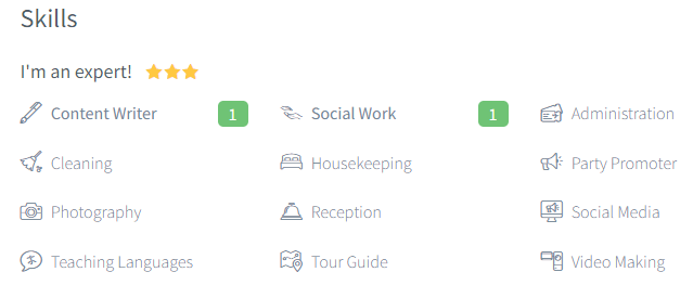 When you look at the skills listed on travelers’ profiles and compare them to the ones required in your positions, you’ll have an even better chance of finding the ideal person for your project. For each volunteer position, you’ll choose a number of skills: