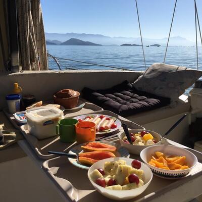 Bom dia 🌎 Sou um ex-médico, engenheiro e capitão francês aposentado e vivo no meu veleiro de 70 anos que achei em Canadá em 2006 e reformei no Brasil. Ancorado na bela baía de Paraty 🏝️, uma cidade histórica (1667) a 150 km do Rio de Janeiro. Estamos a apenas 1 minuto de bote 🚤 do centro histórico ! Vivendo sozinho eu procuro mais companhia com um só pouco de ajuda para manter o barco. Assim vc terá um máximo de tempo pra visitar a região.