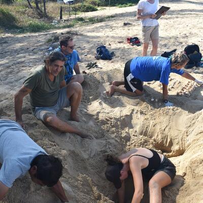 Volunteers will walk 15 Km and monitor the beaches on Phra Thong in the early morning and sometimes on Ko Rah during the day (jumping from a boat). Observe, monitor, and record turtle activity in water. Other activities include: reef the survey, beach cleaning, teaching in the local school, giving talks about turtles/conservation to tourists, upkeep of museum, painting, art/display work, measuring weather and tide, beach profile, bird watching
