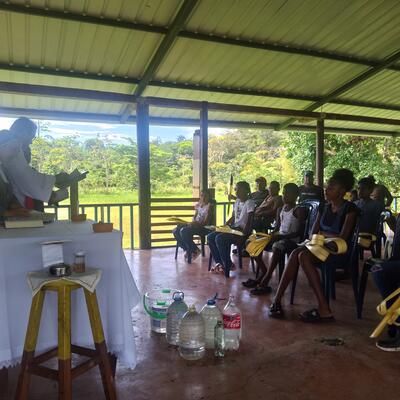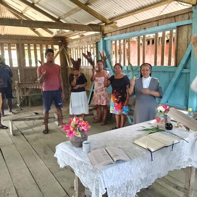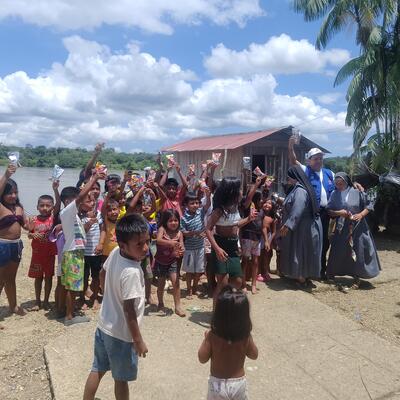 We are missionary nuns in the Pacific region of Colombia. Along the river San Juan are the native and afrocolombian villages that we serve. This convent has been abandoned for ten years and the people are happy now that the nuns have returned. In our village there is a school and a medical center where we give a helping hand. We also prepare children for the sacraments. Most importantly, we advocate for peace.