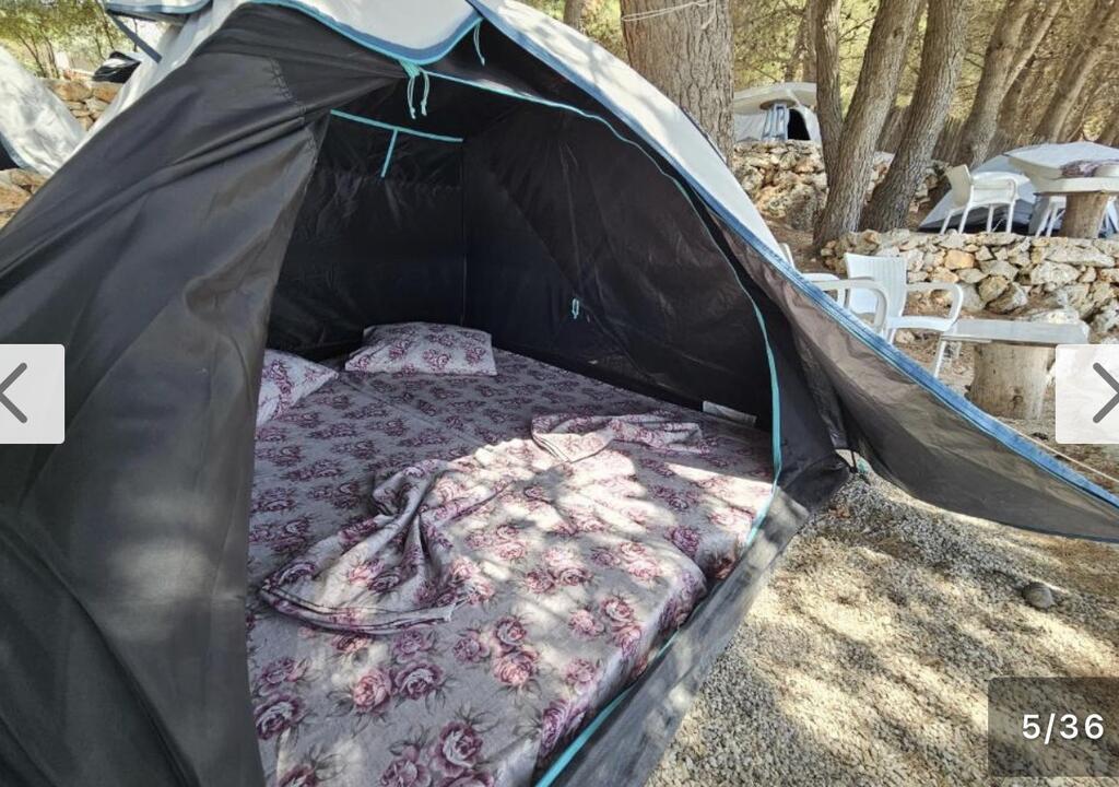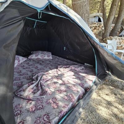 Du wirst in einem Zelt auf einem Campingplatz schlafen.