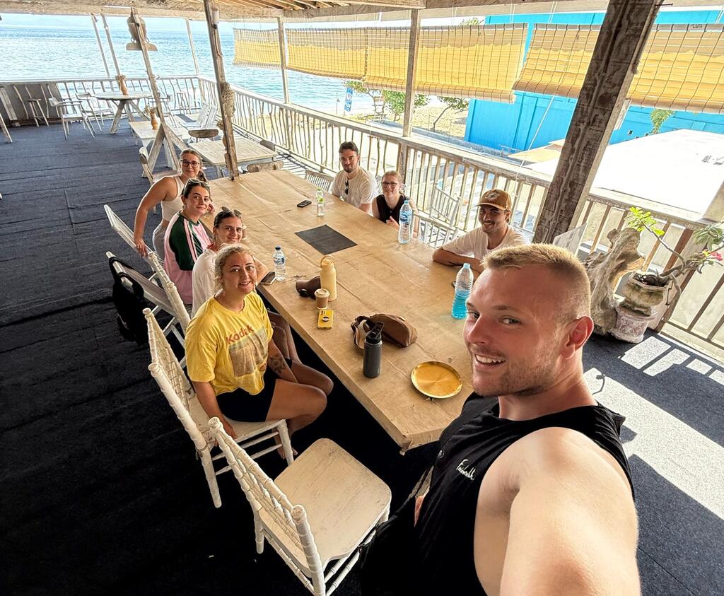 Recharge and connect. The group shares its first meal together, diving into fresh local flavors and getting hyped for the week ahead.