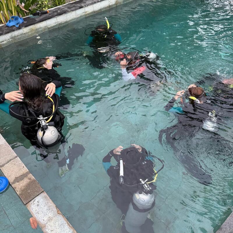 Time to get wet! Head to the pool to learn some new skills, get comfortable with the gear, and take your very first breath underwater.