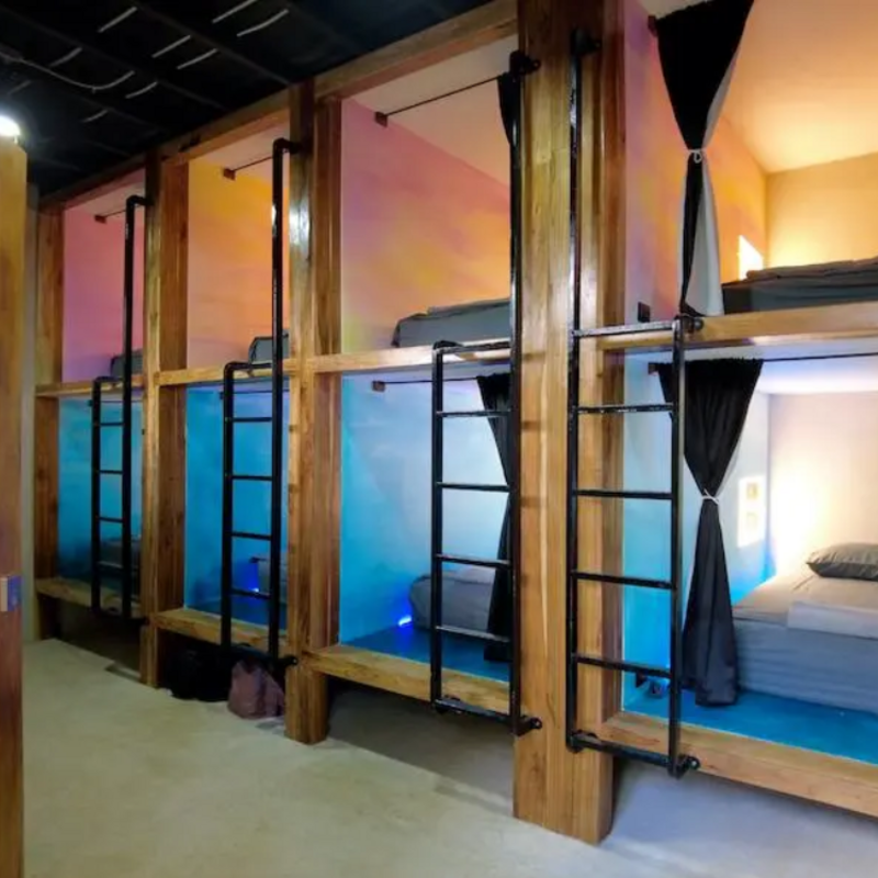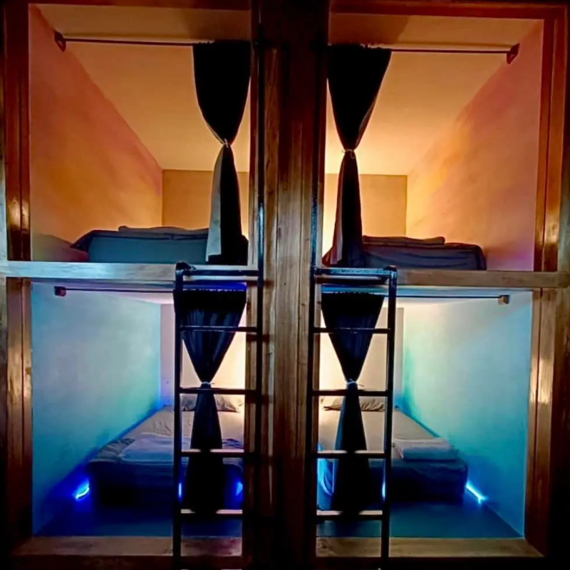 The group will stay in a unique, nautical-themed setting designed for maximum privacy and comfort. The adventure begins "below deck," where the traveler is assigned to a cozy, air-conditioned cabin within a mixed-gender dorm (up to 6 people). Each cabin is equipped with individual reading lights, outlets, mirrors, shelf space, and blackout curtains. For convenience, every room features a private, spacious bathroom. High-speed WiFi is available throughout, and personal lockers along with under-cabin storage ensure all belongings are kept secure.