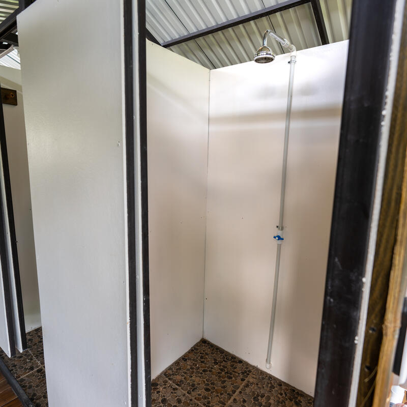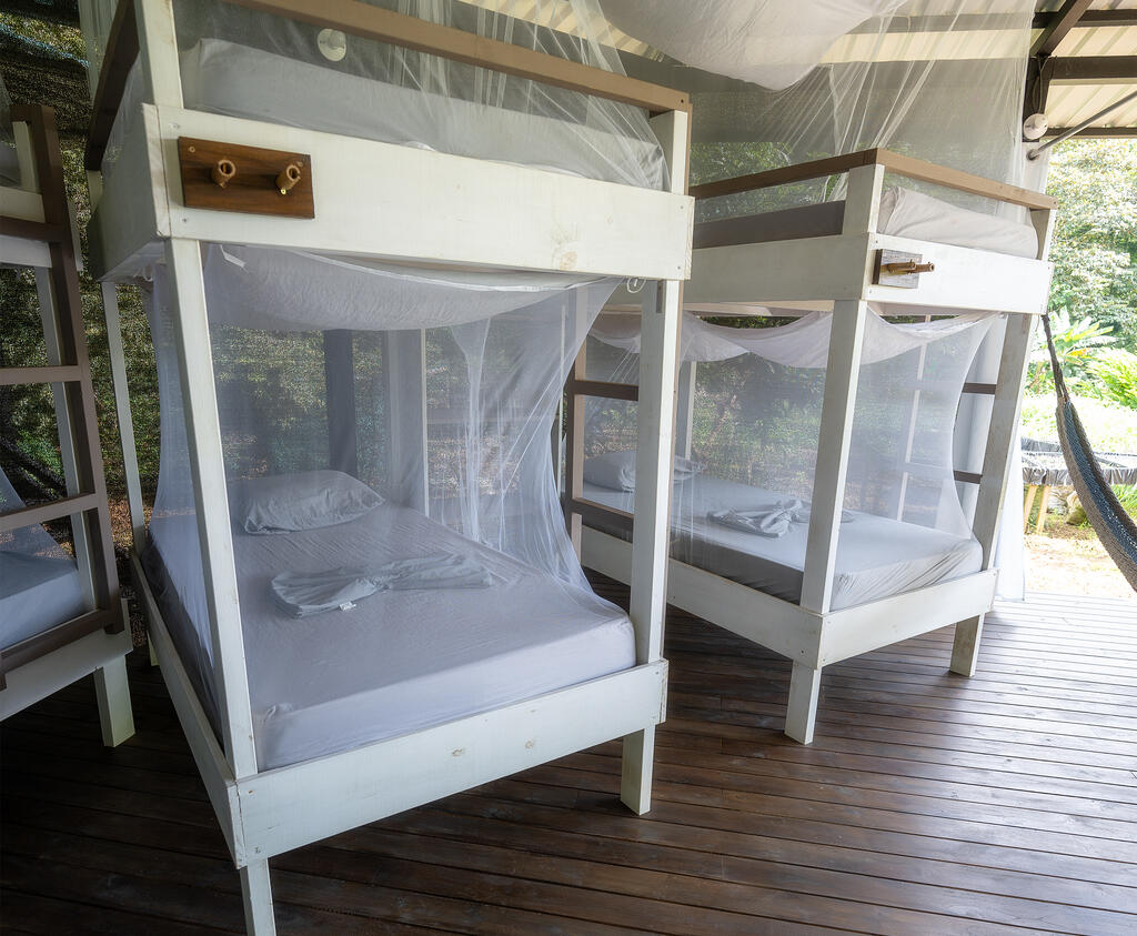 The dormitory offers a comfortable, close-to-nature experience. It accommodates up to 12 travelers of all genders in 6 cozy bunk beds, each one comes with mosquito nets to ensure a peaceful night's rest, with nearby outlets to charge devices and shelves to store clothes and luggage. There are 5 bathrooms with showers for the group to use that are separated by gender.