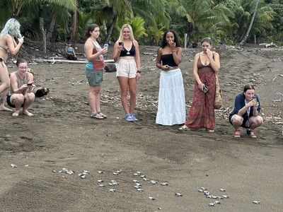 Part of the Program Fee paid by travelers is directed towards supporting a marine life conservation project. At certain times of the year, travelers actively participate in marine conservation activities, primarily focused on sea turtles that nest in the region.