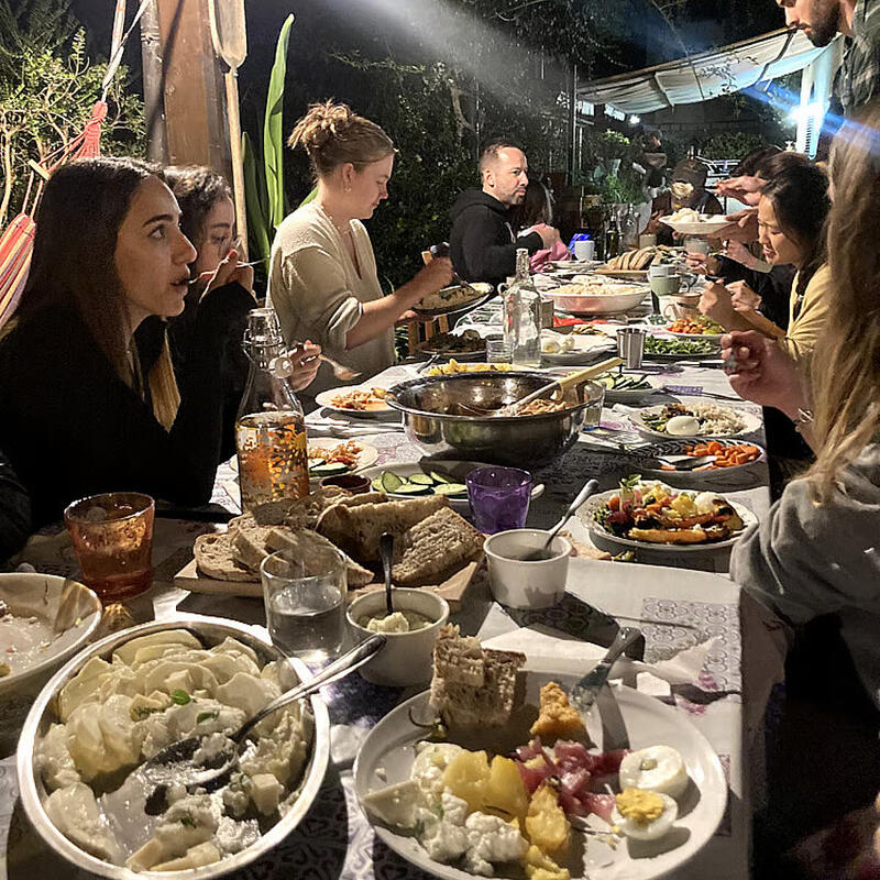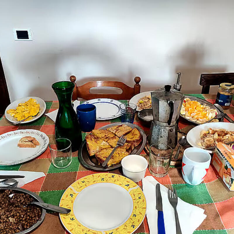 All meals at the project are lovingly prepared by our in-house kitchen team, led by chef Elena, who specializes in traditional Italian vegetarian dishes made from fresh, local ingredients. Breakfast offers light, energizing options like freshly baked sourdough, seasonal fruit, homemade granola, and Italian coffee. Lunch and dinner feature hearty, comforting meals such as pumpkin risotto, eggplant parmigiana, homemade pasta, and fresh seasonal salads—all served buffet-style to share around communal tables.