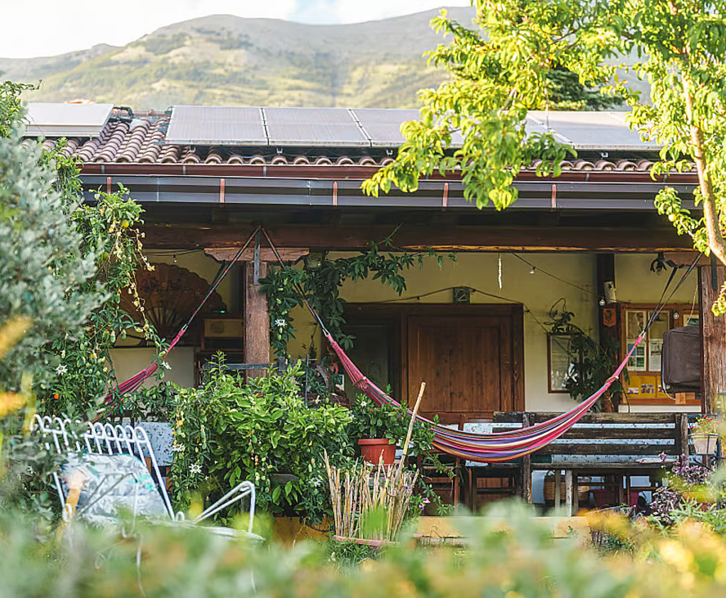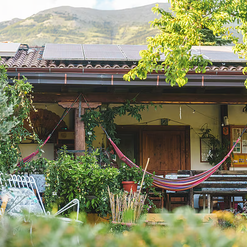 Travelers stay in cozy, rustic farm-style rooms nestled among olive groves and Abruzzi mountain views—shared rooms for up to 4 travelers designed for comfort and simplicity. Bathrooms are shared, clean, and stocked with eco-friendly toiletries. Communal spaces include an outdoor yoga platform, meditation room, dining terrace, and gardens. Limited Wi-Fi encourages a digital detox. Heating and natural ventilation keep rooms comfortable, and sustainable practices like solar energy and composting support a mindful stay.