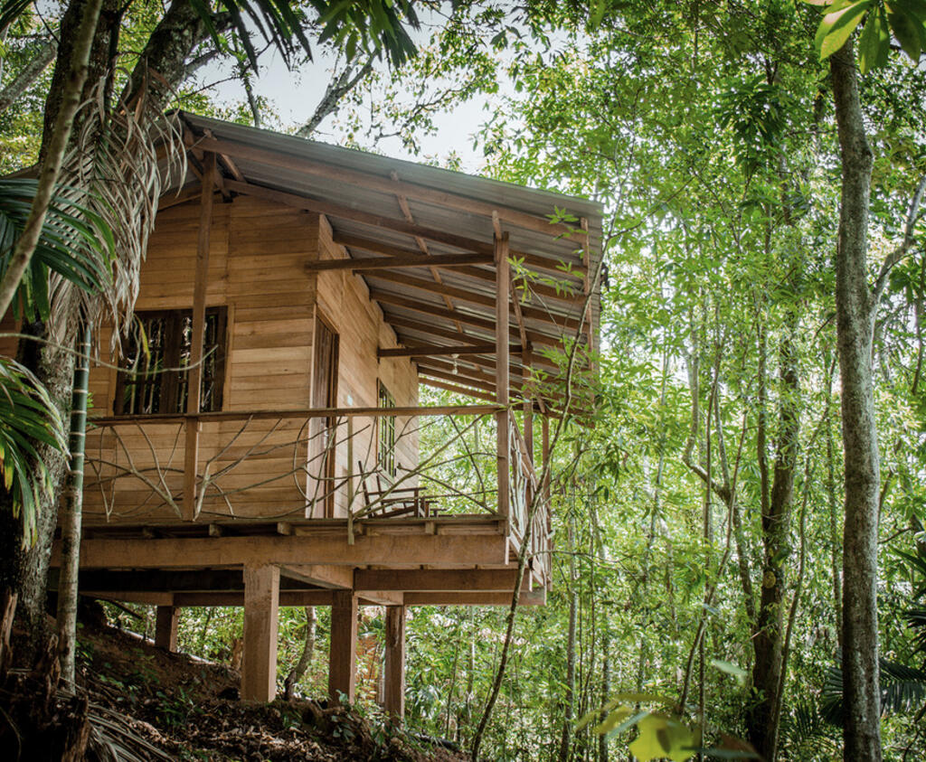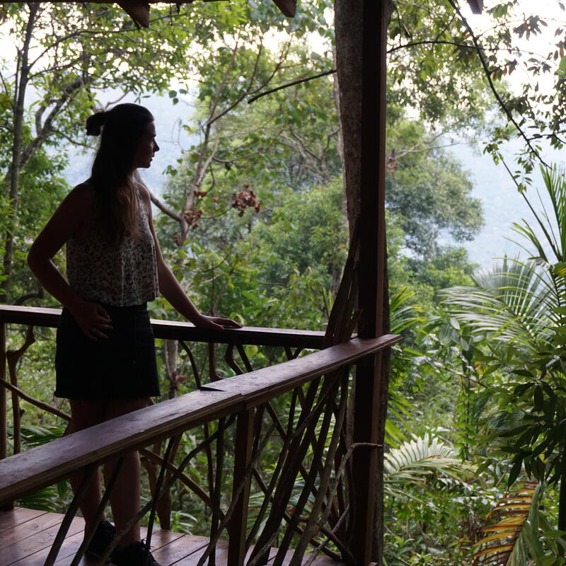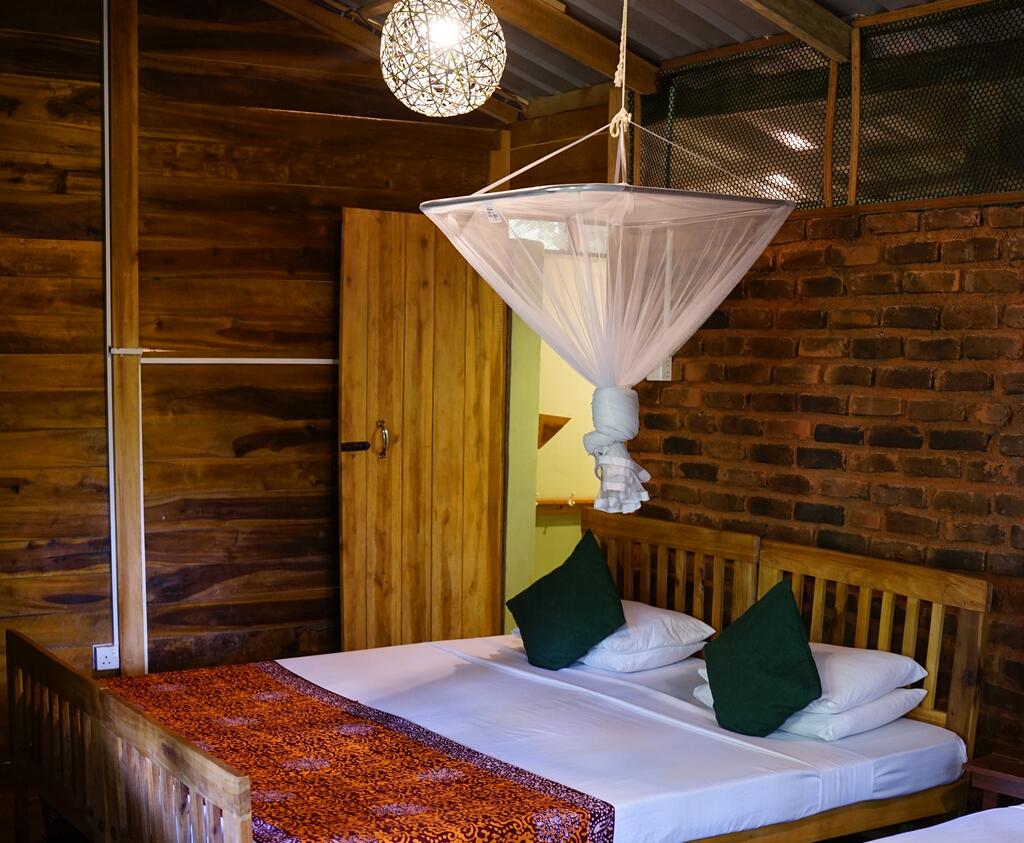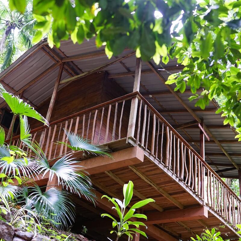 Stay in one of the four unique wooden cabanas, crafted in a traditional style by local villagers. Your private cabana features a balcony to enjoy the forest sounds, an ensuite bathroom with hot water, and a mosquito net. This is the perfect option for a peaceful, solo retreat or for a couple. You will be assigned one of the four stunning wooden cabanas based on availability.
