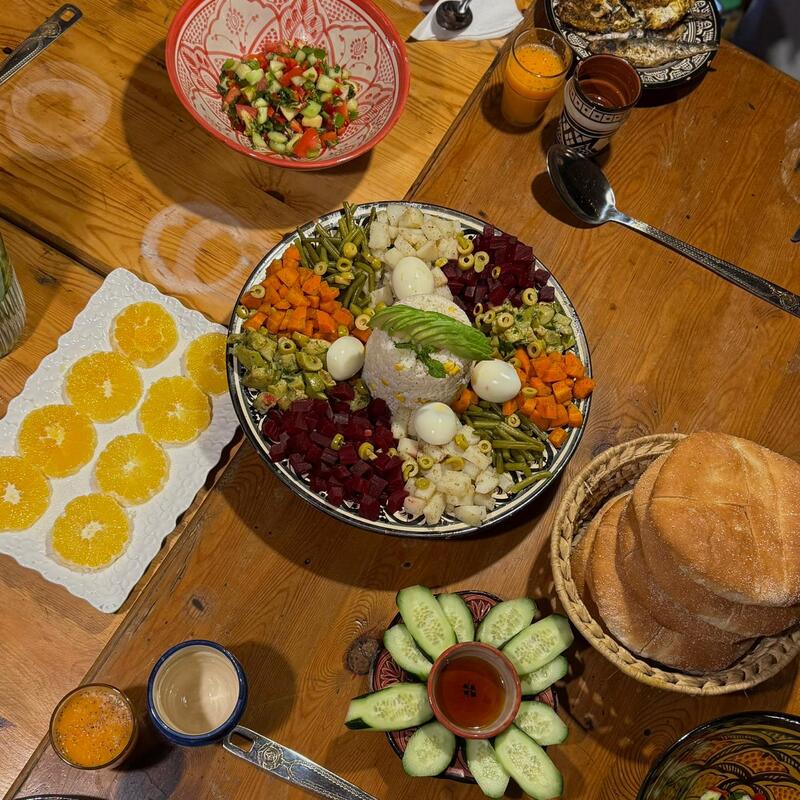 (19:30) Settle down for dinner at the camp, sharing stories and unique finds from your visit to the bustling Agadir souk.