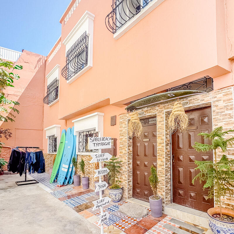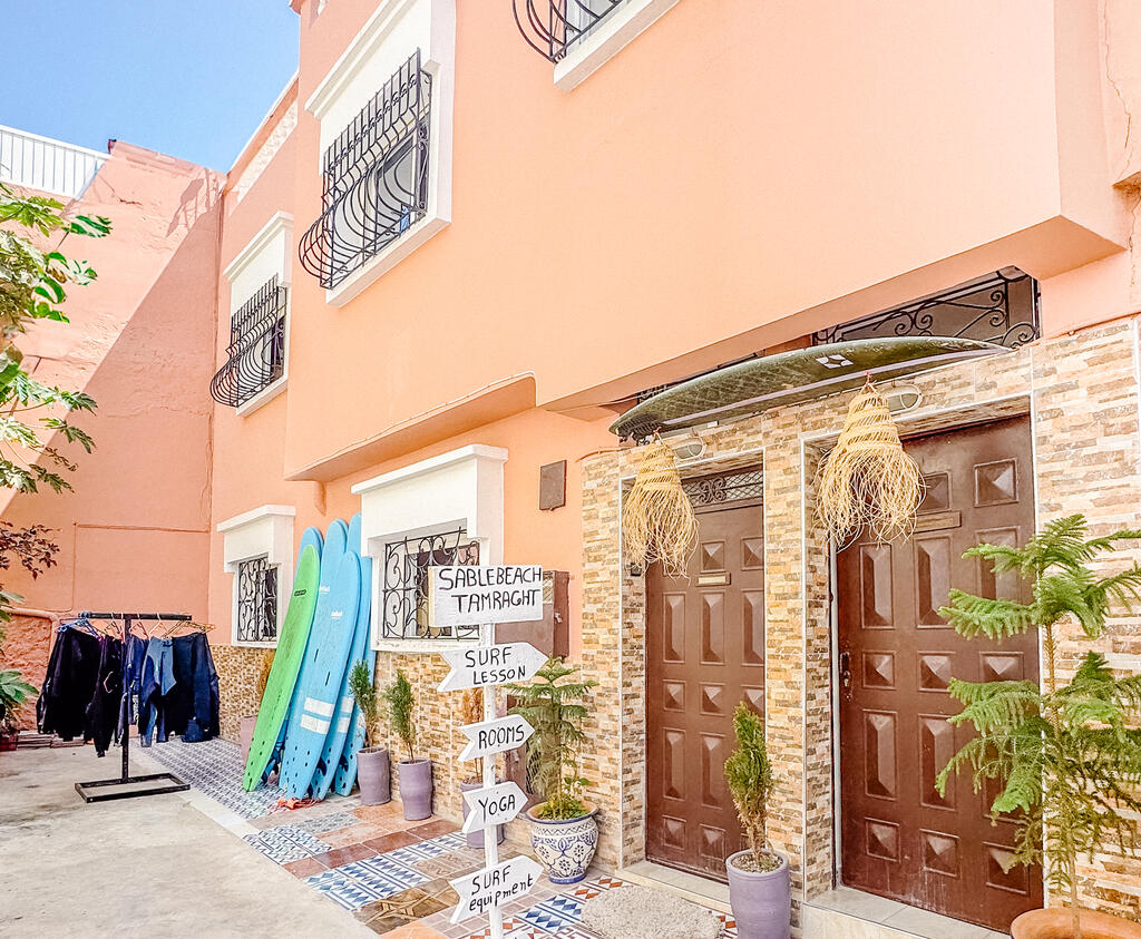 Located in the laid-back village of Tamraght on Morocco's stunning Atlantic coast, this experience immerses you in a world-class surf hub rich in Amazigh culture. Far from the crowded city centers, you’ll be surrounded by sweeping coastlines, rolling sand dunes, and the foothills of the Atlas Mountains. It is a safe, welcoming neighborhood where surf culture blends seamlessy with traditional life, offering easy access to beaches, local cafes, and vibrant markets.