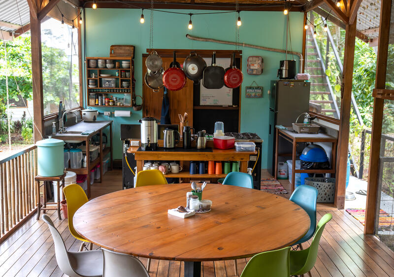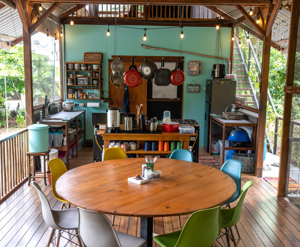 Our dining hall, colorful and equipped with everything we need to prepare delicious meals!