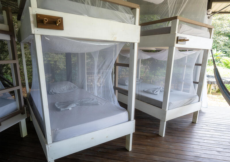 All beds come with individual mosquito nets, as well as a pillow and sheet for your comfort.