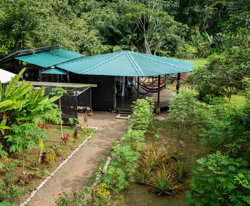 This is the view you'll have of the Round House, the volunteers' accommodation, from the outside. Immersion in nature and comfort go hand in hand here at the Finca!