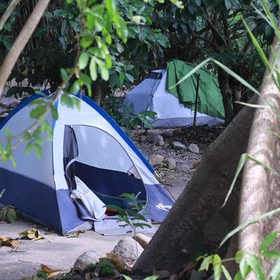 Tendrás una carpa/tienda en un campamento.