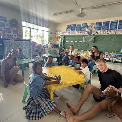 Volunteering at Georgia’s Neverland Hostel is about supporting the local community and island life. Volunteers help teach English to local children, support feeding programs for children and stray dogs, join beach clean-ups, and take part in daily workshops and cultural sharing. Located on Malapascua, a small island famous for thresher sharks, we’re in the north, 5 minutes from North Beach, where magical connections with locals happen naturally.