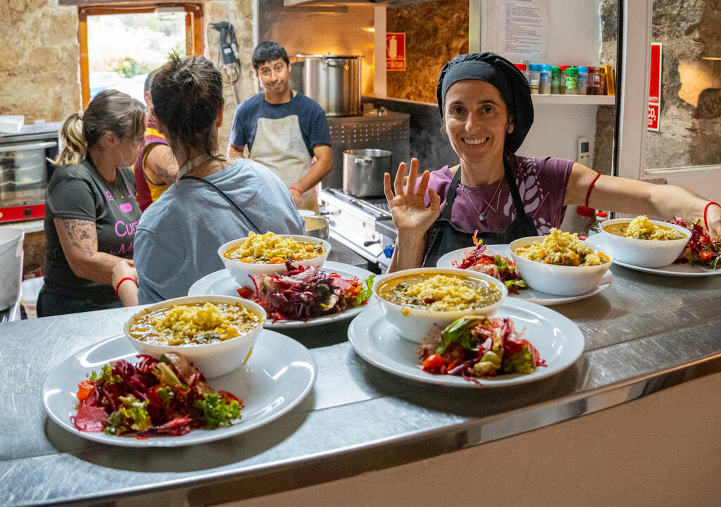 Ayudar en la cocina cortando verduras, fregando utensilios, haciendo ensaladas. Si te desenvuelves bien en la cocina, puedes cocinar sol@ algún día. Las ollas son grandes y a veces cargamos cajas de verduras, por lo que hay que estar en buena forma.
