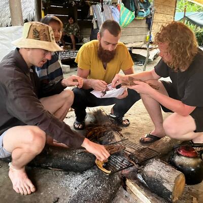 Se necesita la colaboración, para la movilidad desde el ultimo pueblo (bus y bote - USD10), alimentacion basica que no producimos (arroz, pasta,etc - USD10/dia), transporte para ir de pesca - USD6/actv