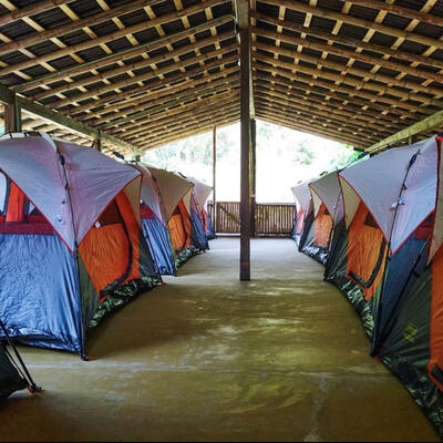 Tendrás una carpa/tienda en un campamento.