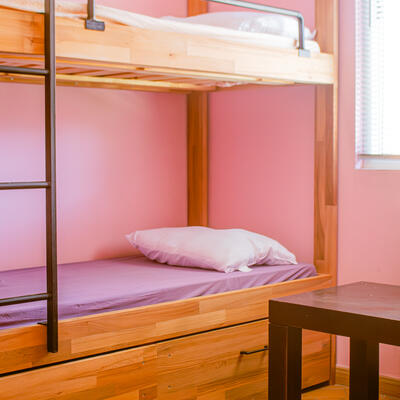 Tendrás una cama en un cuarto compartido con otras personas.