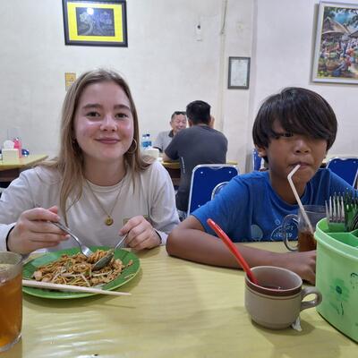 The food is great, the kids were friendly, everyone was so nice, and everything is so fun! Even though Im volunteering to them, I was still able to da lot of things in Bali 🥳🥳