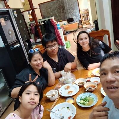 Our time at Quy Nhon City has been one of the best experiences of my life. You stay with the home, Rooney and their parents at their home. They all make you feel very welcomed and are really friendly! You have a private room to stay in, it is clean and comfortable! Every week night you spend about an hour and a half with a group of young people, to talk and play games. You meet their parents as well, they're so so lovely and welcoming. During the day we spent most of our time with other families, going hiking, swimming and rollerblading. Thank you so much for having us!! 🩵