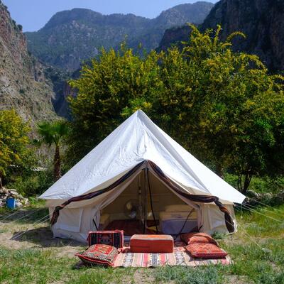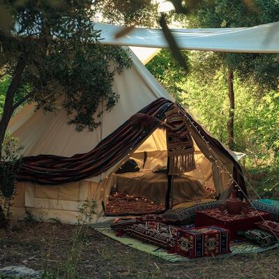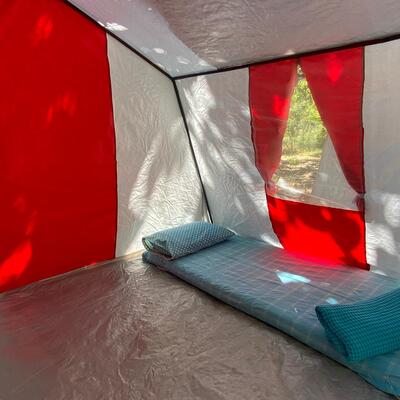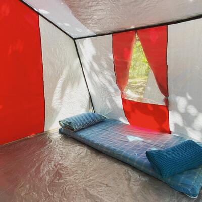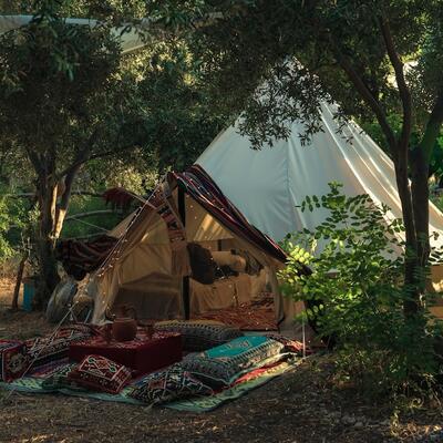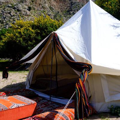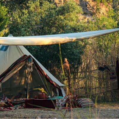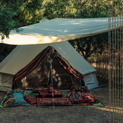 Tendrás una carpa/tienda en un campamento.