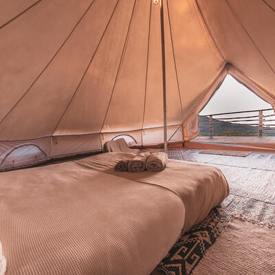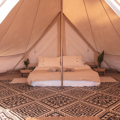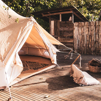 Tendrás una carpa/tienda en un campamento.