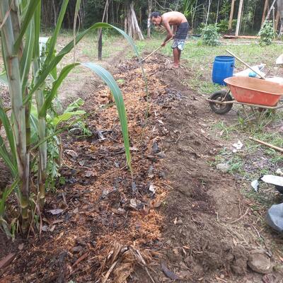 A experiência com o Juan foi maravilhosa. Ele é muito gentil e disposto a ensinar, seus filhos então, são uma graça e nos sentimos realmente em família. O lugar é muito especial e é interessante ver como a comunidade se organiza, em Serra Grande como um todo, há algo único na forma como as pessoas vivem e cooperam. No trabalho, fizemos de tudo um pouco: limpeza de gramíneas, plantio de agrofloresta e, principalmente, aprendemos bastante sobre compostagem e manejo de resíduos — ensinamentos que levaremos para a vida, junto com o carinho que recebemos. Agradecemos demais a Juan e seus filhos.