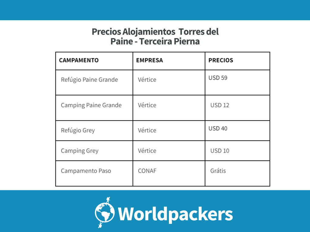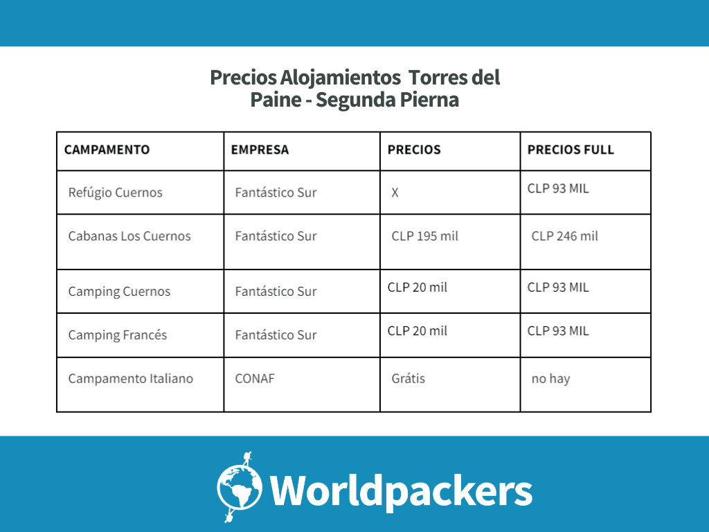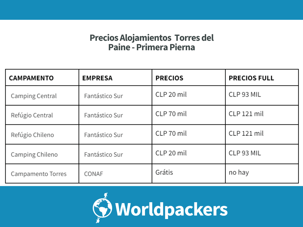 Existe una modalidad económica, hospedándose únicamente en los campamentos gratuitos brindados por CONAF, el administrador del parque(conaf.cl).