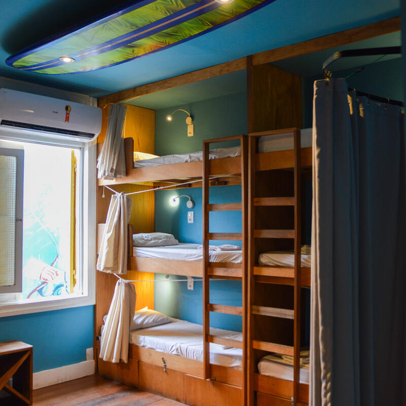 Travelers will stay in a vibrant beachfront property featuring mixed-gender shared dormitories with up to 15 people per dorm. The rooms are equipped with air conditioning, personal lamps, and private lockers for security (bring a padlock!). Amenities include shared bathrooms with hot showers (separated by gender), a refreshing swimming pool to cool off after surf sessions, and a communal kitchen. The vibe is social and perfect for making new connections while living steps away from the waves.
