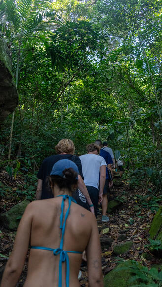 A scenic walk to Prainha, an ecological sanctuary beach surrounded by lush green mountains and pristine nature. Note: Activities may be rescheduled based on weather and nature.
