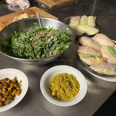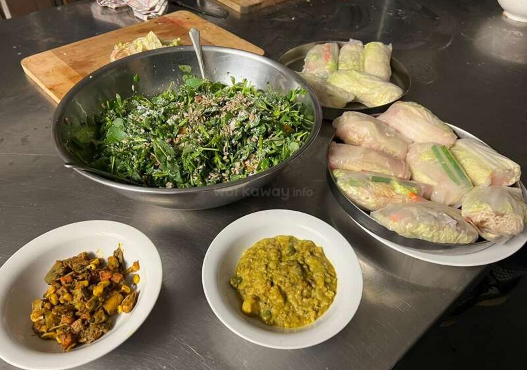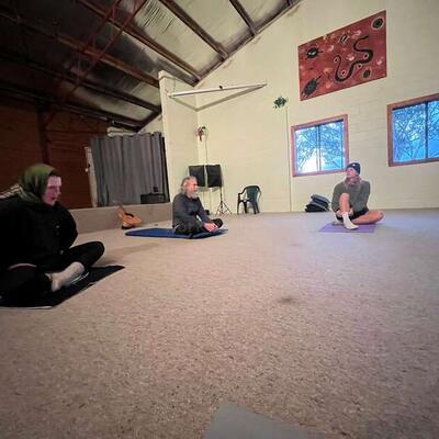 The retreat part: morning and evening Yoga, meditation, chanting and class that build an understanding and help establish one's practice. The work: gardening, light construction and building maintenance
