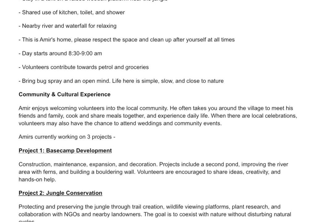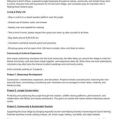 Volunteering with Amir was more than just volunteering, it was a real life experience. He introduced me to the local culture in a genuine way and took me to places I would have never discovered on my own. I'm truly grateful that I listened to my instincts and trusted him. And what can I say about the place itself? Absolutely incredible. A 100% local, authentic experience that I'll carry with me for a long time.