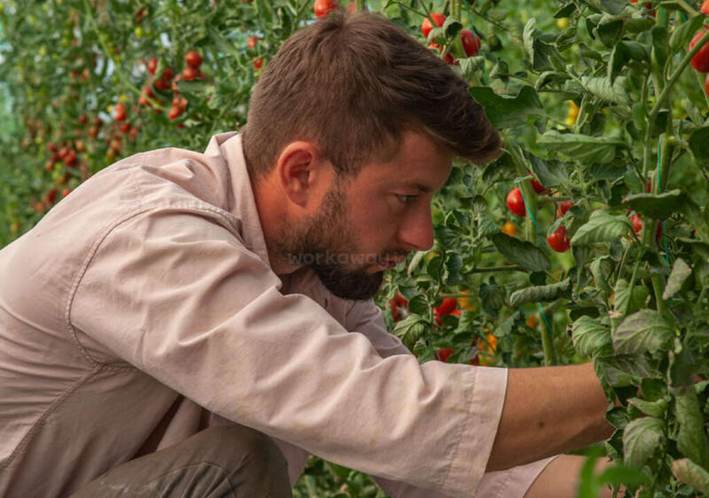 Pianta colture, semina e aiuta nei lavori all'aperto.