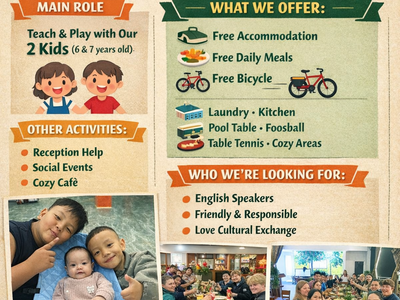 I was a volunteer at the hostel in Phong Nha for three weeks. The reception position consisted of managing guest check-ins and check-outs, organizing tours and transportation, supporting restaurant operations, and providing a positive guest experience. Linh provided training, and was supportive, responsive, and open to feedback. The position had flexible hours, and I was able to explore Phong Nha in my personal time. It was a great opportunity to connect with guests and other volunteers! Thank you for the experience, Linh!