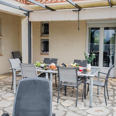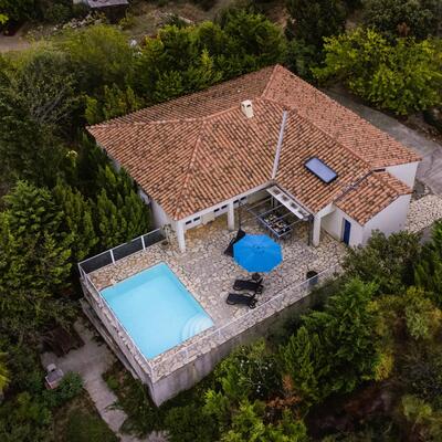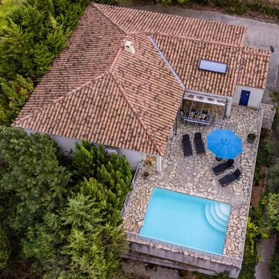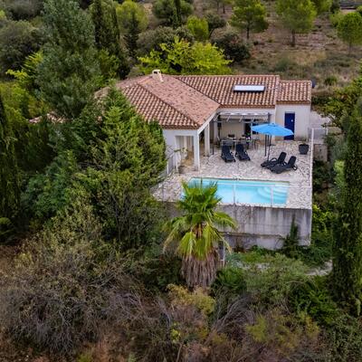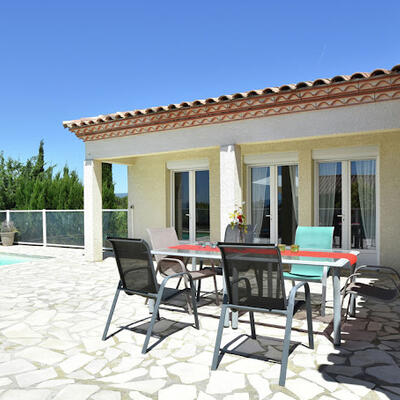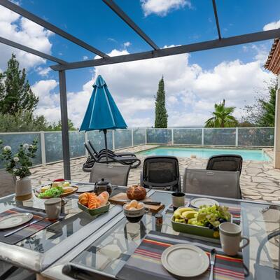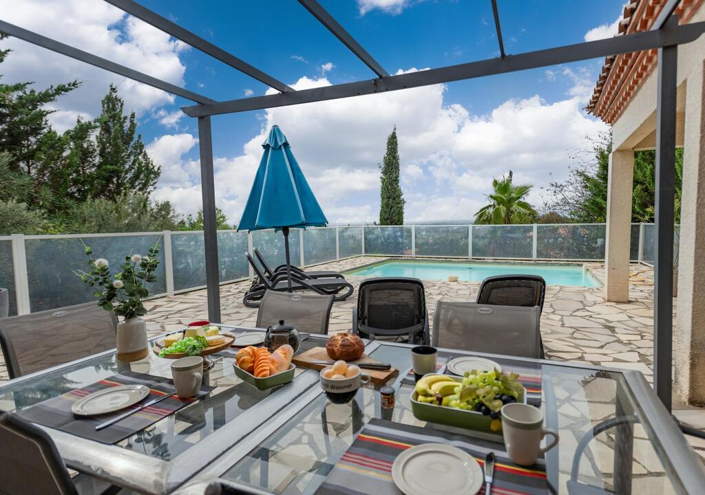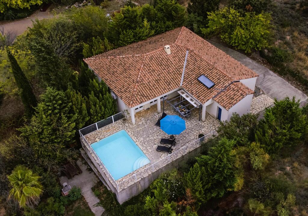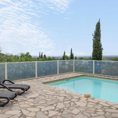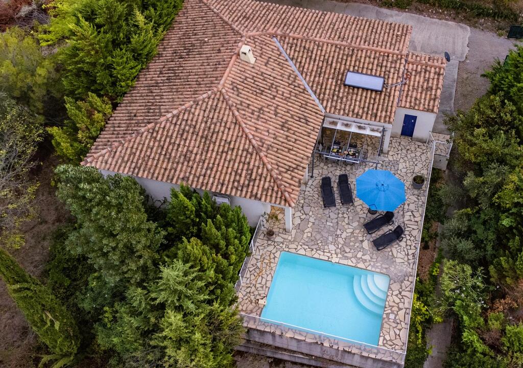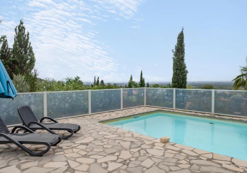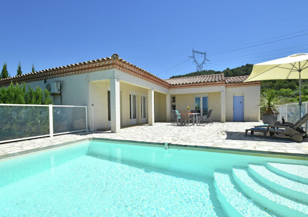 Peaceful villa with pool in the heart of Southern France Perched on the hills above Oupia, in the beautiful rolling landscape of the Minervois region, this elegant villa welcomes up to 8 guests in a setting of peace, nature, and tranquility. From the terrace, you’ll enjoy a panoramic view over the hills and the private swimming pool, creating a calming atmosphere.