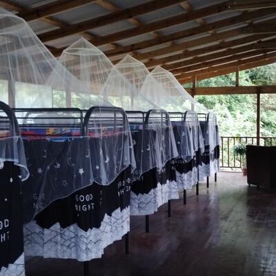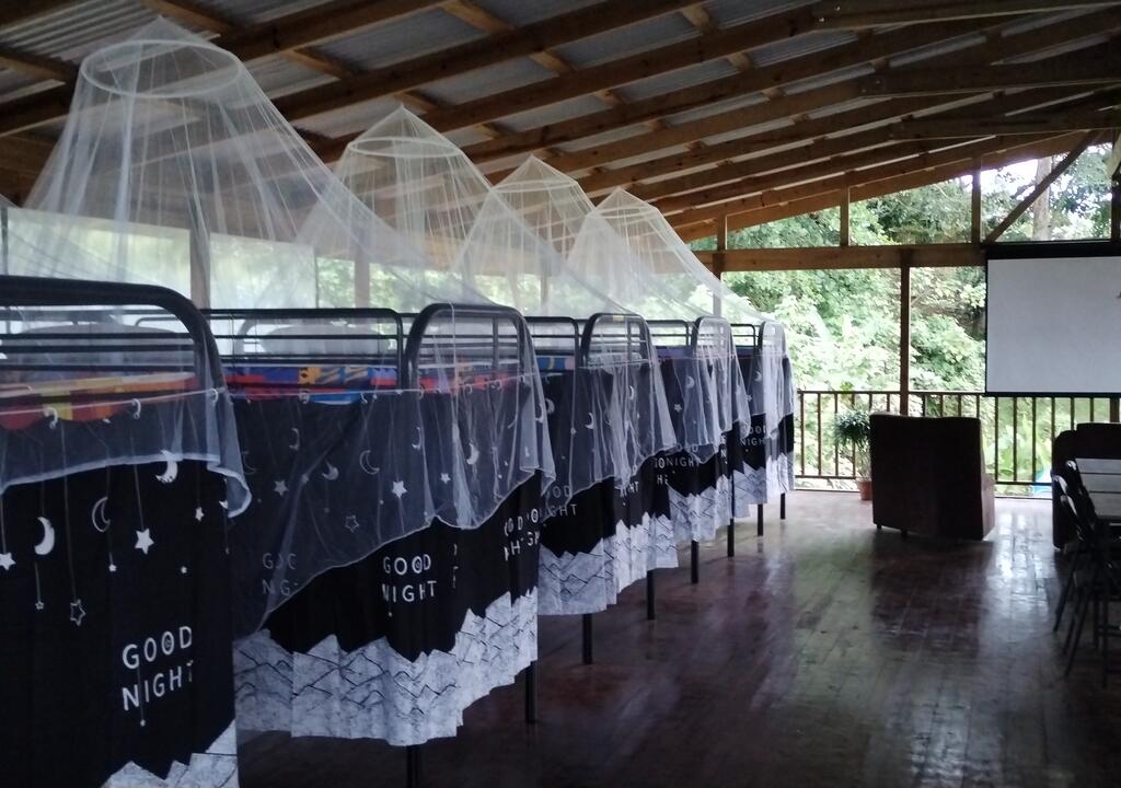 You will have a bed in a shared room, which means you will share the same room with other people.