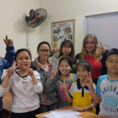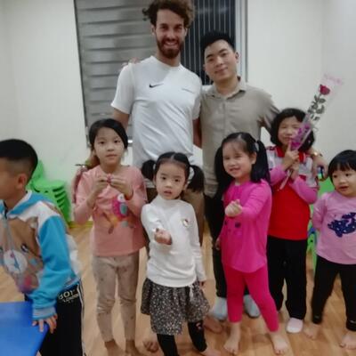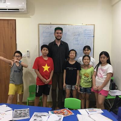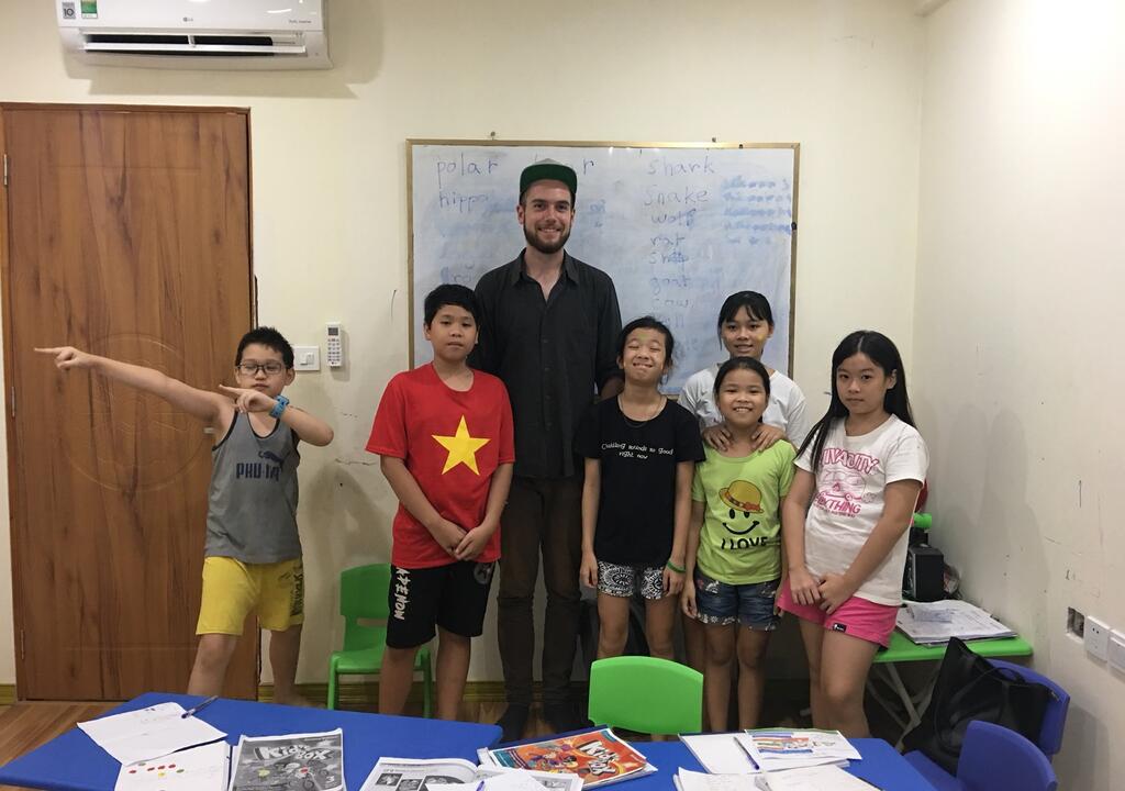 Teaching English to kids & adults at our school in Vietnam