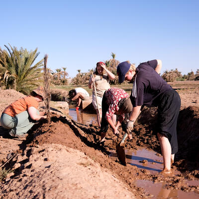 Help us maintaining our garden and greening the desert. We live at the edge of the Sahara, in an oasis that is drying out. We are working hard on finding & creating stable water sources, and our goal is to help plants, birds, water and insects return to this area. We want to be a hopeful example for our local community so that they can stay and continue living in this harsh environment.