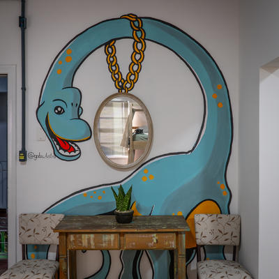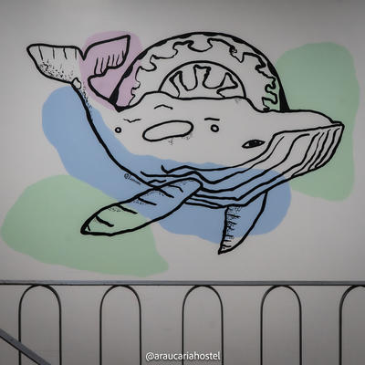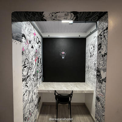 O hostel é o hostel mais bonito e organizado que eu já visitei. Possui quartos pequenos, com em média apena um beliche por quarto, o que dá uma excelente tranquilidade na hora de dormir. O café da manhã é sensacional e tive total liberdade para produzir o desenho na parede do quarto no qual desenhei. Os desenhos em todos os quartos são muito bem feitos, o quê impõem uma certa exigência na qualidade da execução e uma reflexão antes do uso de técnicas experimentais, mas pude produzir meus próprios giz pastéis com verniz alquídico e achei o resultado final muito bom.