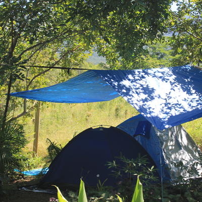 You will sleep in a tent at a camping site.