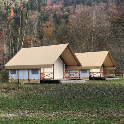 You will sleep in a tent at a camping site.