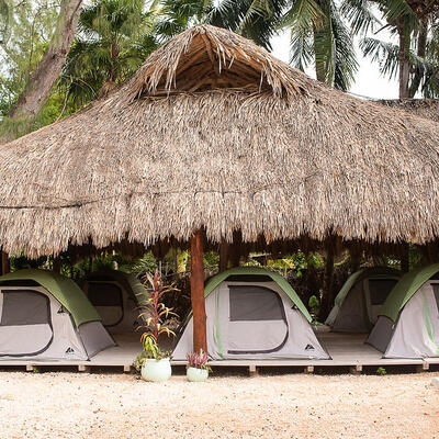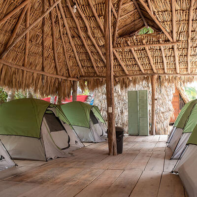 You will sleep in a tent at a camping site.