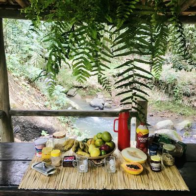 A pousada é aconchegante, tranquilo e cheio de cachoeiras ao redor, o que me deixou imersão em um relaxamento diário. No período que eu voluntariei aconteceu um retiro espiritual que foi fundamental para meu desenvolvimento como ser e as conexões que fiz durante o retiro estou trazendo comigo pra vida. Só Gratidão 🙏🏽