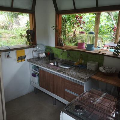 O lugar é incrível e tem uma estrutura muito boa, cozinha top e banheiros perfeitos! Infelizmente não pude praticar muito bioconstrução pois tudo praticamente já havia sido feito. Tem frutas colhidas do pé e isso além de raro foi muito bom. O chalé é realmente lindo e muito aconchegante assim como todo o resto.