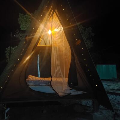 You will sleep in a tent at a camping site.
