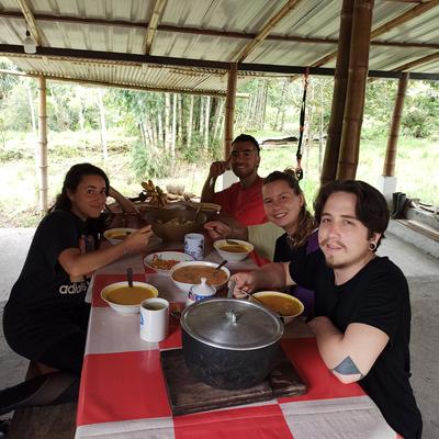 I was a volunteer for 5 days. We played volleyball with Diego's friends in the local community and shared some meals with them as well. We also went fishing with a net, hiked the rivers, and explored the jungle, and visited Puyo for a summer festival. The work in the morning was tough, but Diego is right there beside you working as well. Overall a nice, immersive experience and I learned a lot. P.S. Diego has four of the smartest and cutest dogs I have ever seen!