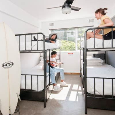 You will have a bed in a shared room, which means you will share the same room with other people.