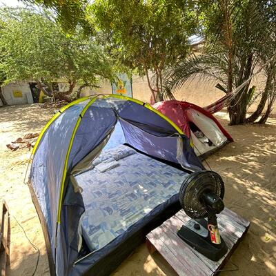 You will sleep in a tent at a camping site.